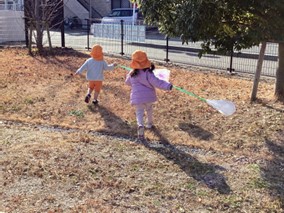 元気に正月遊びの凧あげを楽しんでいます♡